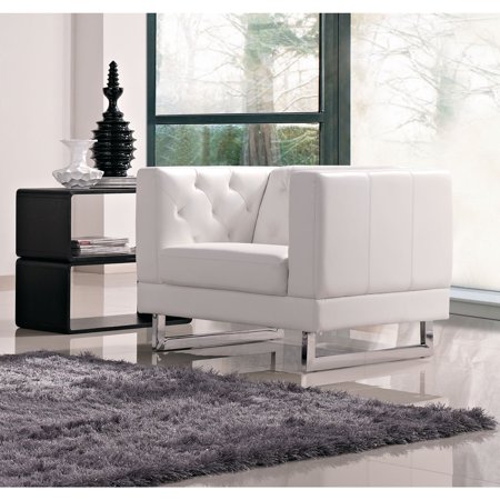 The Allegro chair features a classic contemporary design with a tufted seat back and stainless steel feet. This chair is complete with a white finish and solid hardwood frame. <br /> <br /> <ul> <li>Finish: White </li> <li>Upholstery materials: Synthetic leather </li> <li>Upholstery color: White</li> <li>Upholstery fill: High density foam</li> <li>Solid hardwood frame</li> <li>Hand stitched details</li> <li>No-sag sinuous spring construction</li> <li>Fully upholstered in durable and easy to maintain synthetic leather</li> <li>Stainless steel legs </li> <li>Seat dimensions: 22 inches deep & 18 inches high</li> <li>Dimensions: 30 inches high x 38 inches wide x 34 inches deep</li> </ul> <br /> <b><i>Assembly required. This product ships in one (1) box.</i></b> <br /> <i>Avoid placing your furniture in direct sunlight and maintain at least two feet between furniture and heat sources. Use a professional cleaner to help resist staining and prevent overall soiling.</i> <br /> <br /> <b>Note: This product will be shipped using Threshold delivery. The product will be delivered to your door or the nearest ground-level entrance of your residence. Signature required upon delivery. </b>