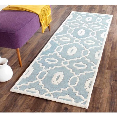SAFAVIEH Chatham Collection 2'3" x 9' Blue/Ivory CHT745B Handmade Geometric Premium Wool Runner Rug