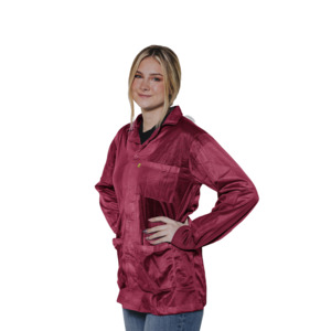 The 8812 Series jackets from Transforming Technologies feature a patented hip-to-cuff feature for hands-free grounding These garments are fabricated from lightweight 88% polyester and 12% carbon fabric for unmatched operator comfort. Superior workmanship provides reliable panel to panel continuity. The 8812 Series jackets maintains consistent continuity readings for up to 100 wash cycles.