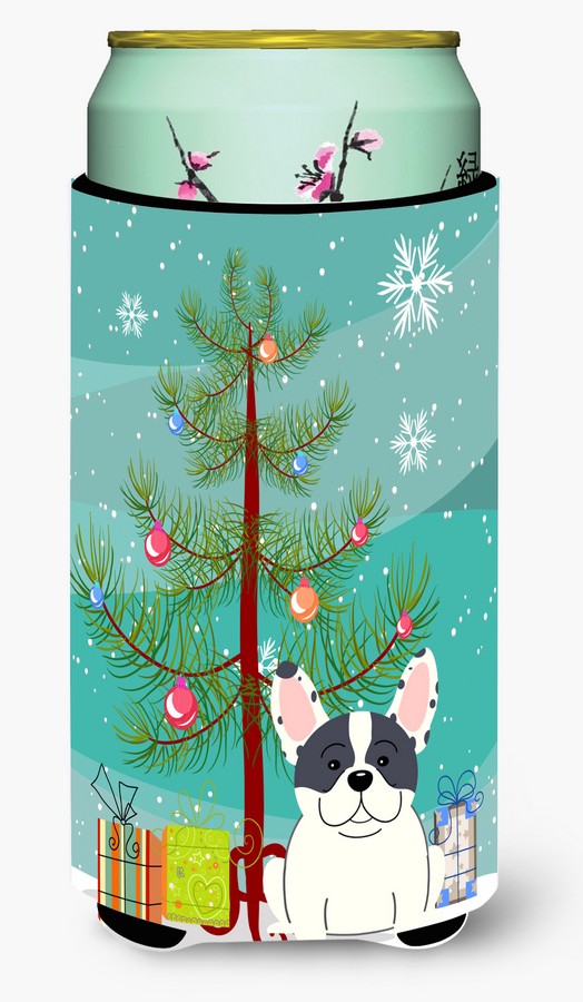 Carolines Treasures BB4136TBC Merry Christmas Tree French Bulldog Piebald Tall Boy Beverage Insulator Hugger
