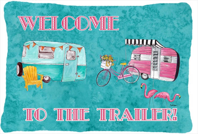 Carolines Treasures 8760PW1216 Welcome to the trailer Indoor & Outdoor Decorative Fabric Pillow - 12 x 16 in.