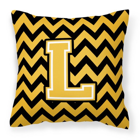 Carolines Treasures CJ1053-LPW1414 Letter L Chevron Black & Gold Fabric Decorative Pillow