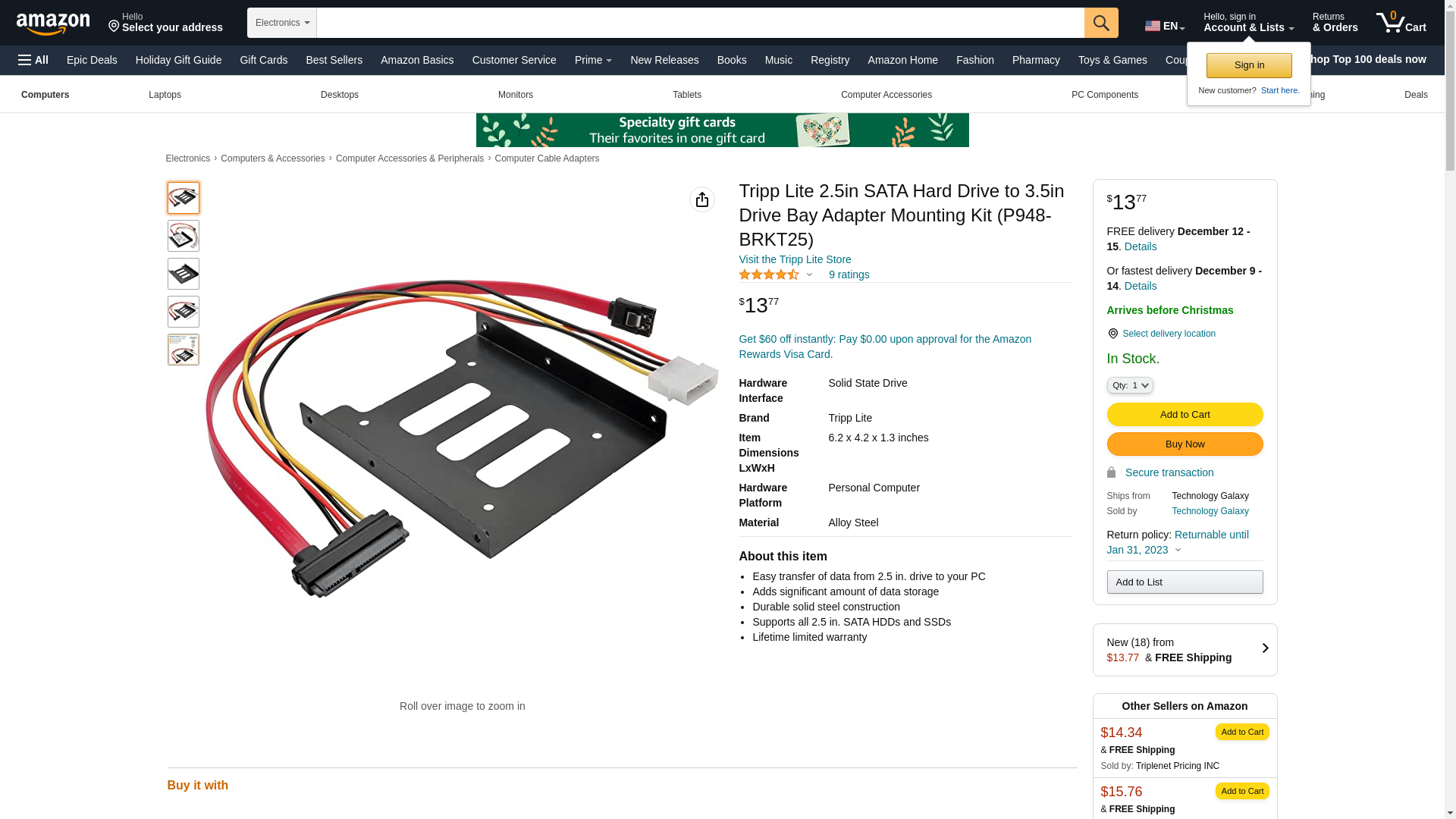| altex.com | P948-BRKT25 | 1 | -2 | 1 | 1 @ $14.99 |