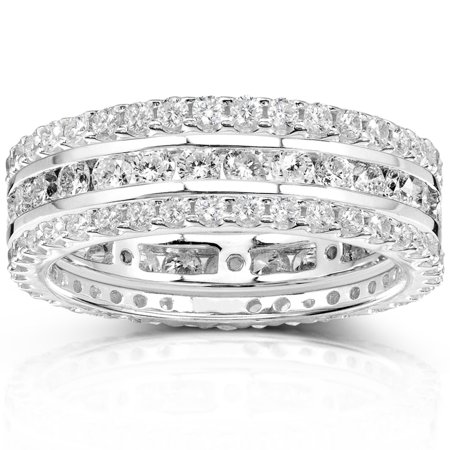 Set of three (3) diamond eternity bands. Two carats total.This set of stacked bands includes:One channel set eternity band of 1 carat total weight.Two prong set eternity bands of 1/2 carat total weight each.