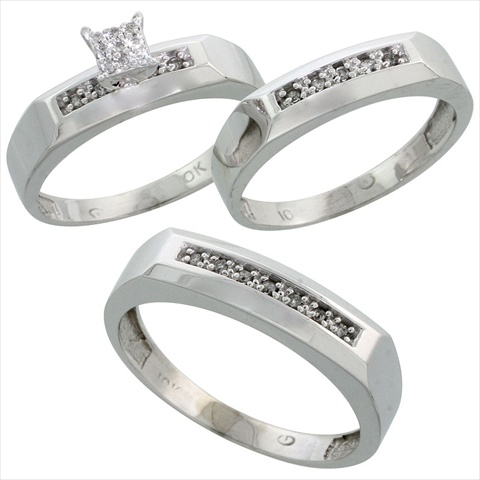 World Jewels 14K White Gold Ladies .14 Ct. Brilliant Cut Diamond Wedding Ring Set, Size 5.5