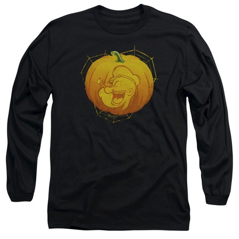 Trevco Popeye-Pop O Lantern Long Sleeve Adult 18-1 Tee, Black - Large