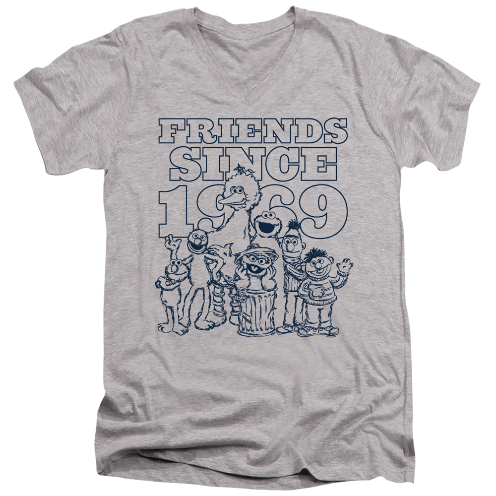 Trevco SST290-AV-1 Sesame Street & Friends Since-Short Sleeve Adult V-Neck 30-1 T-Shirt, Athletic Heather - Small