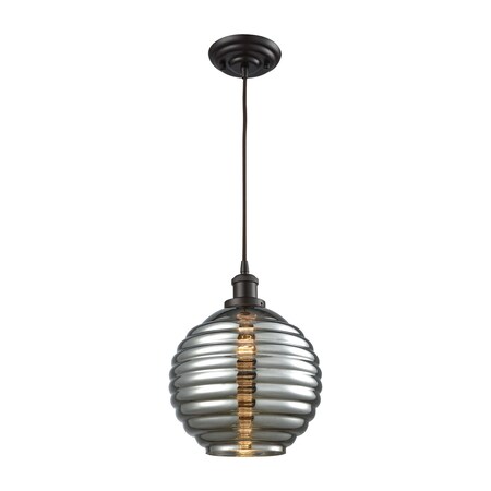 Ridley 1Light Pendant in Oil Rubbed Bronze with Smoke Plated Beehive Glass, Includes Adaptor Kit