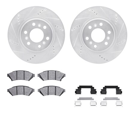 Dynamic Friction Company Front Brake Rotors-Drilled and Slotted-Silver with 3000 Series Ceramic Brake Pads includes Hardware 7312-52016