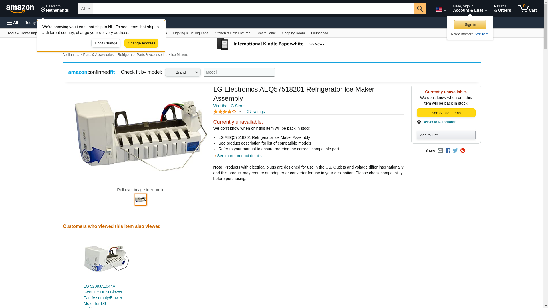- LG AEQ57518201 Refrigerator Ice Maker Assembly