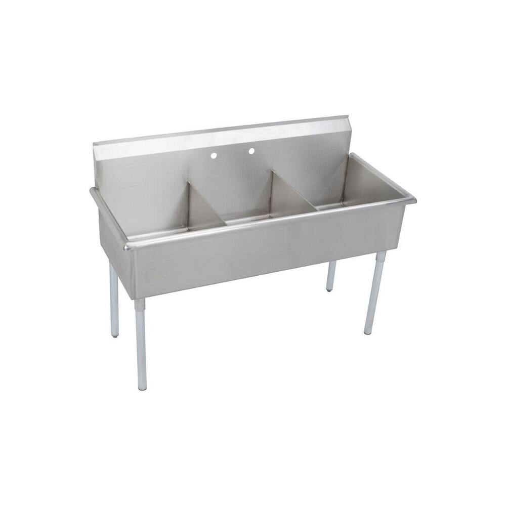 Elkay 3 Compartment Professional Grade Commercial Kitchen Stainless Steel Sink, 18"W x 21"L x 12"D