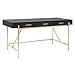 OSP Home Furnishings Broadway Modern Executive Desk with 3 Drawers and Charging Station, Black Gloss Finish with Gold Frame