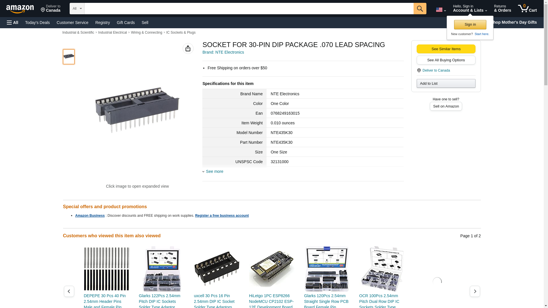 NTE ELECTRONICS NTE435K30 SOCKET FOR 30-PIN DIP PACKAGE .070 LEAD SPACING (10 pieces)
