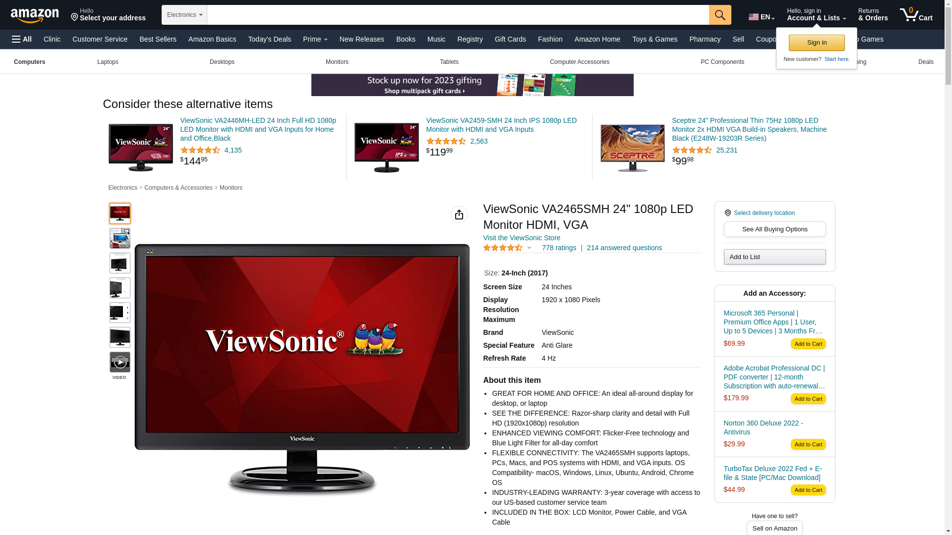 ViewSonic VA2465SMH 24" 1080p LED Monitor HDMI, VGA