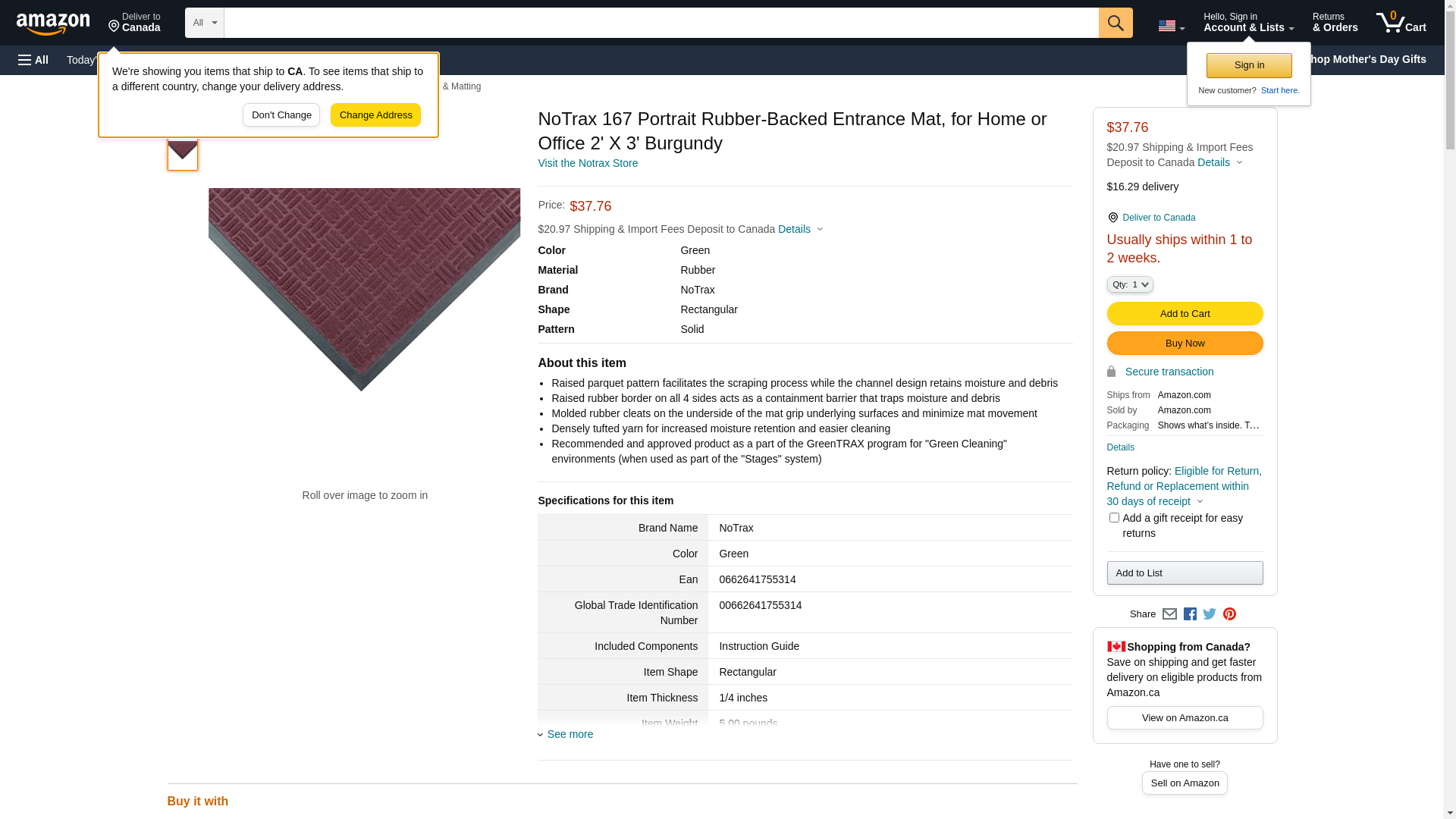 NoTrax 167 Portraitâ„¢ Rubber-Backed Entrance Mat, for Home or Office 2' X 3' Burgundy