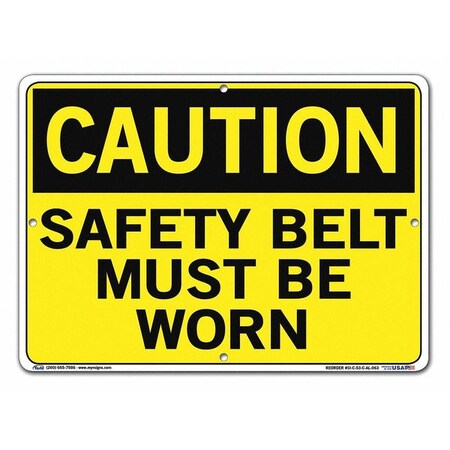 Vestil SI-C-53-C-AL-063 SAFETY BELT MUST BE WORN Caution Sign, Aluminum, 0.063" Overall Size, 14.5" W x 10.5" H