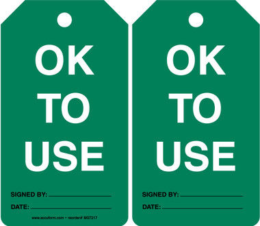Order MGT217CTM by Accuform PF-Cardstock Tag "Ok to Use" - US Mega Store