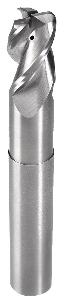 Routing End Mill Aluminum Rougher/Finisher Medium Length Necked Thru-Coolant High Performance Number of Flutes 3 Single End Ball Nose End Style Center Cutting Type Right Hand Cut Carbide Uncoated Finish Dia 1/4 In Shank Dia 1/4 In Length of Cut 3/8 In Overall Length 4 In Neck Dia 0.236 In Neck Length 1 3/4 In Cut Angle 40 Deg Helix Angle 40 Deg Radius 0.1250 In For Aluminum