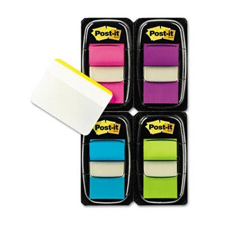Post-it flags in assorted colors and sizes help you mark pages, point out important details and draw attention to action items. Regardless of size or color, they always stay where you place them, but you can reposition them if you need to. All varieties come in convenient dispensers that easily fit inside your bag, briefcase or satchel, allowing you to keep your favorite flags handy, wherever you go. Stock up and save! Color(s): Assorted Brights; Dispenser: Pop-Up; Assortment: Bright Blue; Bright Pink; Bright Purple; Bright Green; Size: 1" x 1 3/4".