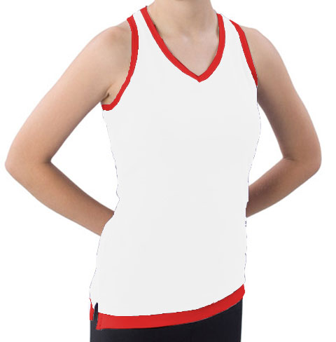 Pizzazz Performance Wear 8700 -WHTRED-YXS 8700 Youth Layered Look Top - White with Red - Youth X-Small