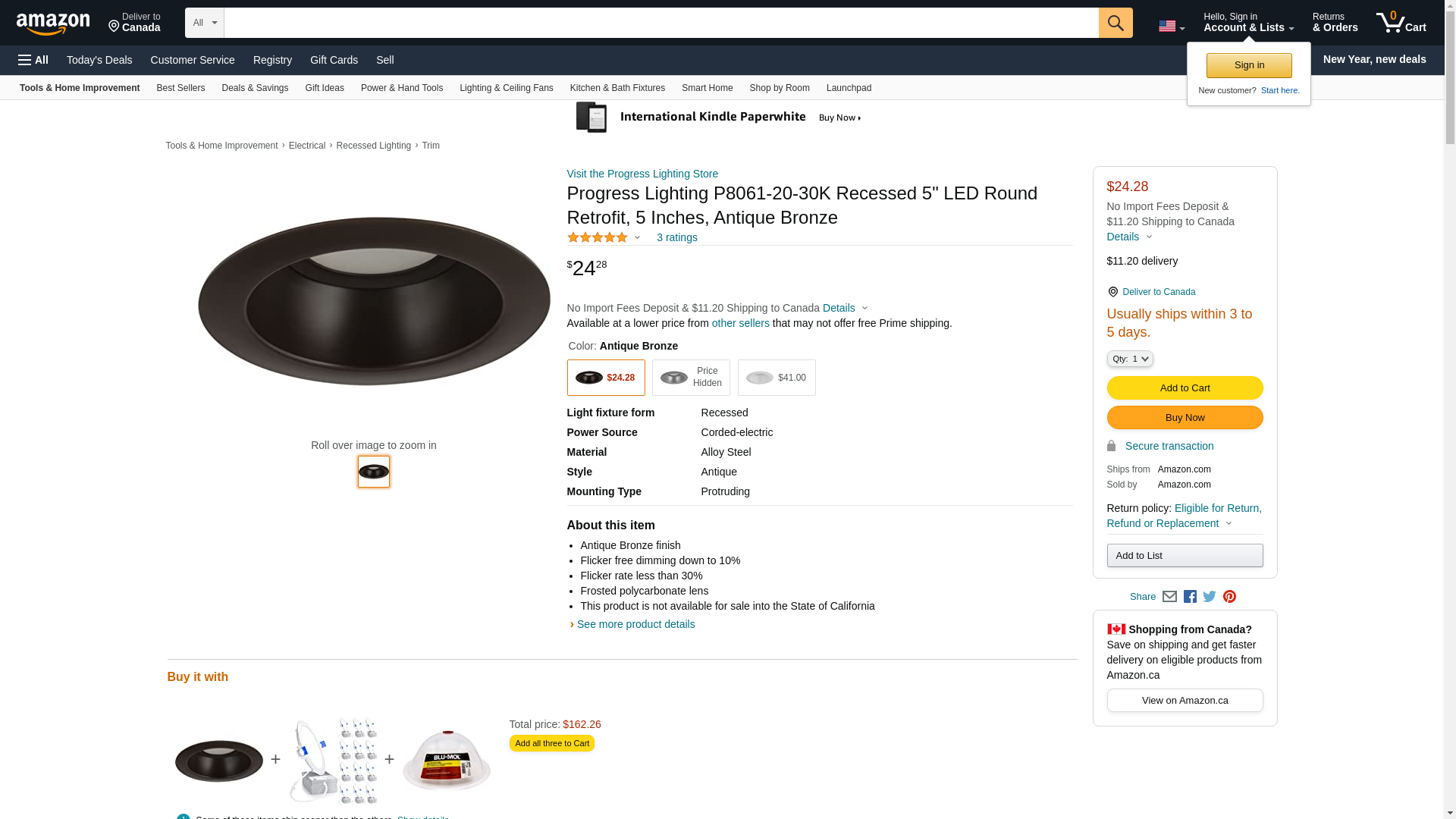 | brecherslighting.com | P8061-20-30K | 1 | 17 | 1 | 1 @ $47.20 |