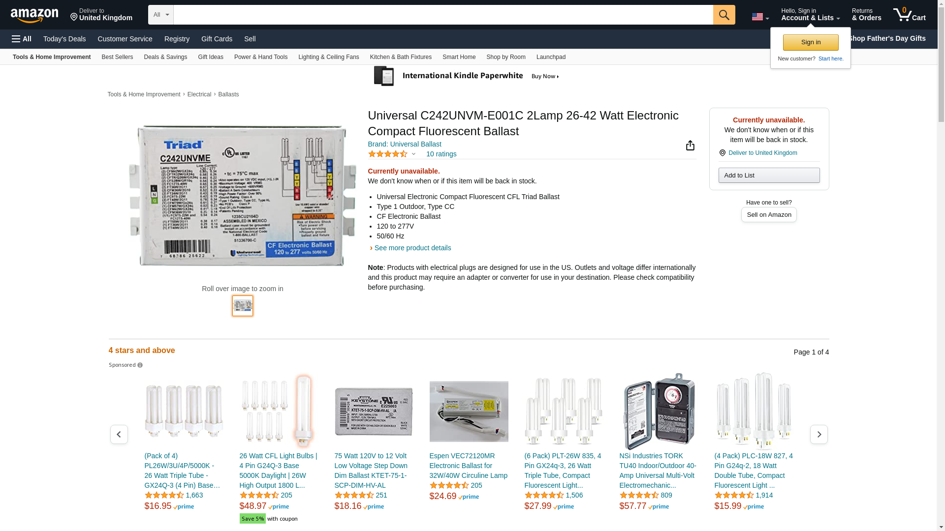 - Universal Electronic Compact Fluorescent CFL Triad Ballast