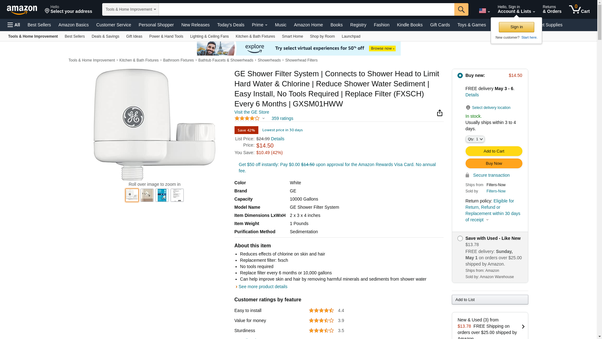 GXSM01HWW GE SHOWER FILTER SYSTEM | Midwest Appliance Parts