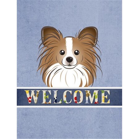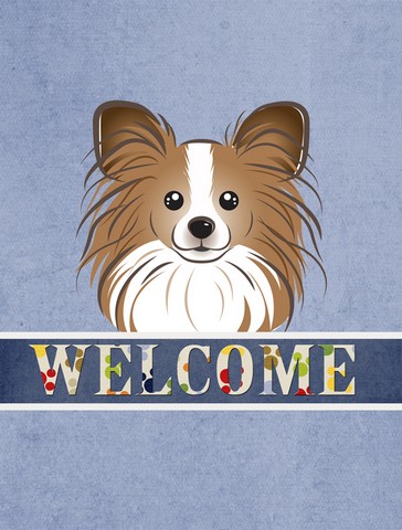Caroline's Treasures BB1434CHF Papillon Welcome House Flag, Blue Large Porch Sleeve Pole Decorative Outside Yard Banner Artwork Wall Hanging, Polyester, House Size, Multicolor