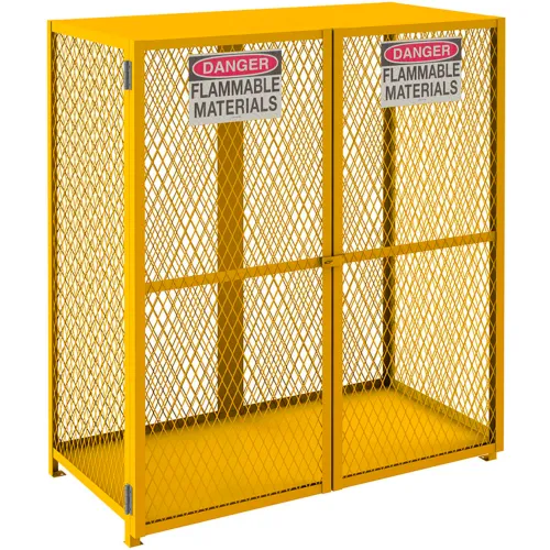 - Expanded metal sides, back and door, for ventilation and visibility of contents. Cylinder cradles securely hold propane tanks in place