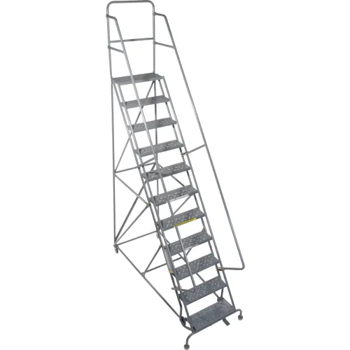 Tri-Arc KDSR111246-D2 11-Step 20" Deep Top Steel Rolling Industrial & Warehouse Ladder with Handrails, 24" Wide Perforated Tread