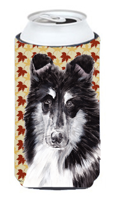 Caroline's Treasures SC9678TBC Black and White Collie Fall Leaves Tall Boy Hugger Can Cooler Sleeve Hugger Machine Washable Drink Sleeve Hugger Collapsible Insulator Beverage Insulated Holder