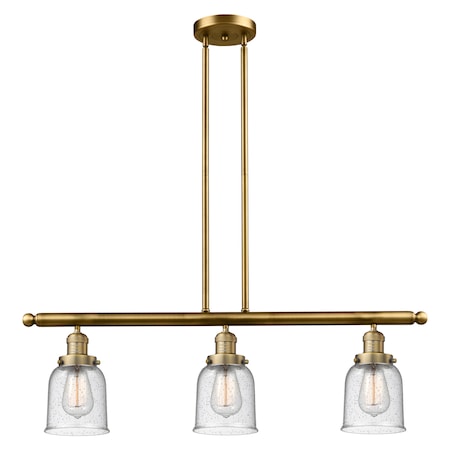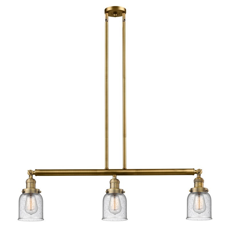 Innovations Lighting 213-BB-G54 Small Bell - Three Light Adjustable Stem Island, Brushed Brass Finish with Seedy Glass