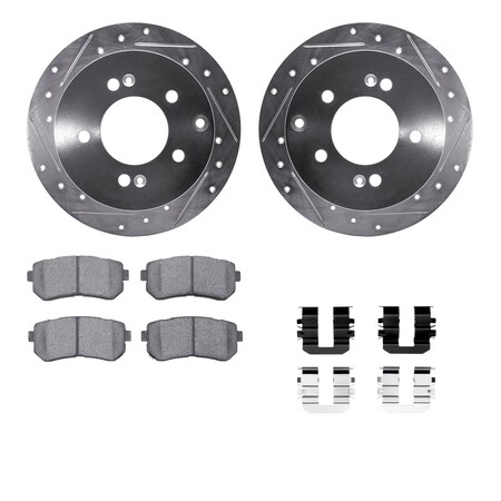 Rear - Dynamic Friction Company Brake Rotors - Drill/Slot - Silver with Ceramic Brake Pads and Hardware Kit 7312-21022
