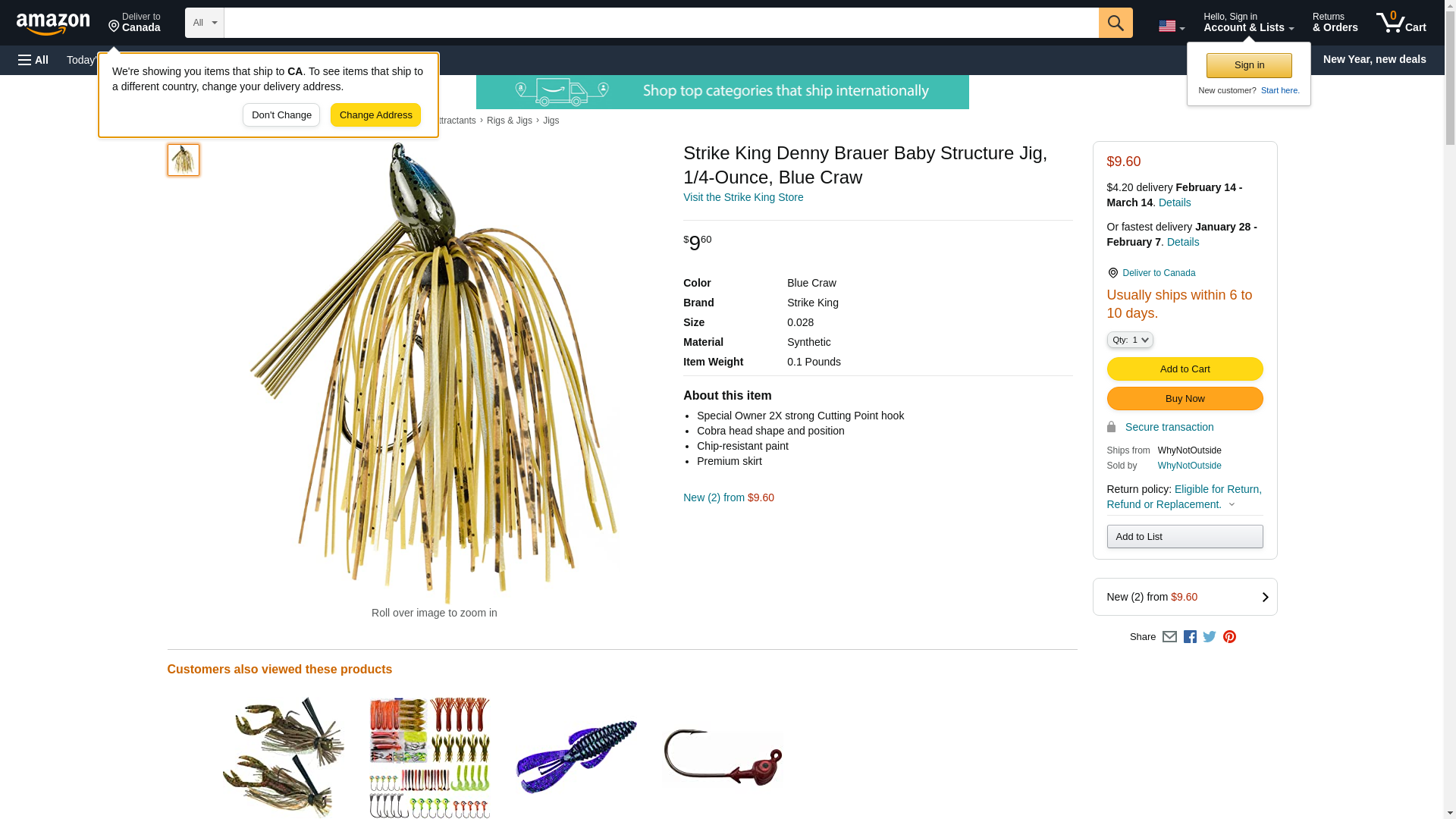 Strike King Lures Denny Brauer Structure Jig 0.25 oz 2/0 Hook Blue Craw [FC-051034229547]