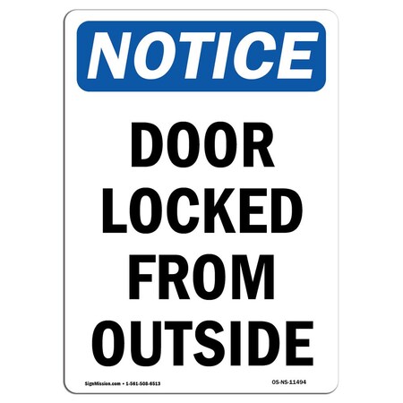 OSHA Notice Sign, Door Locked From Outside, 18in X 12in Decal