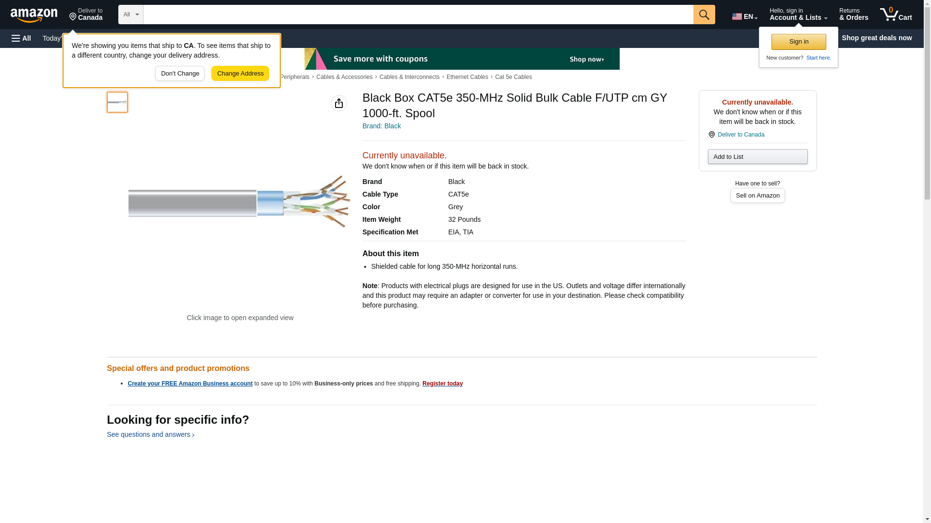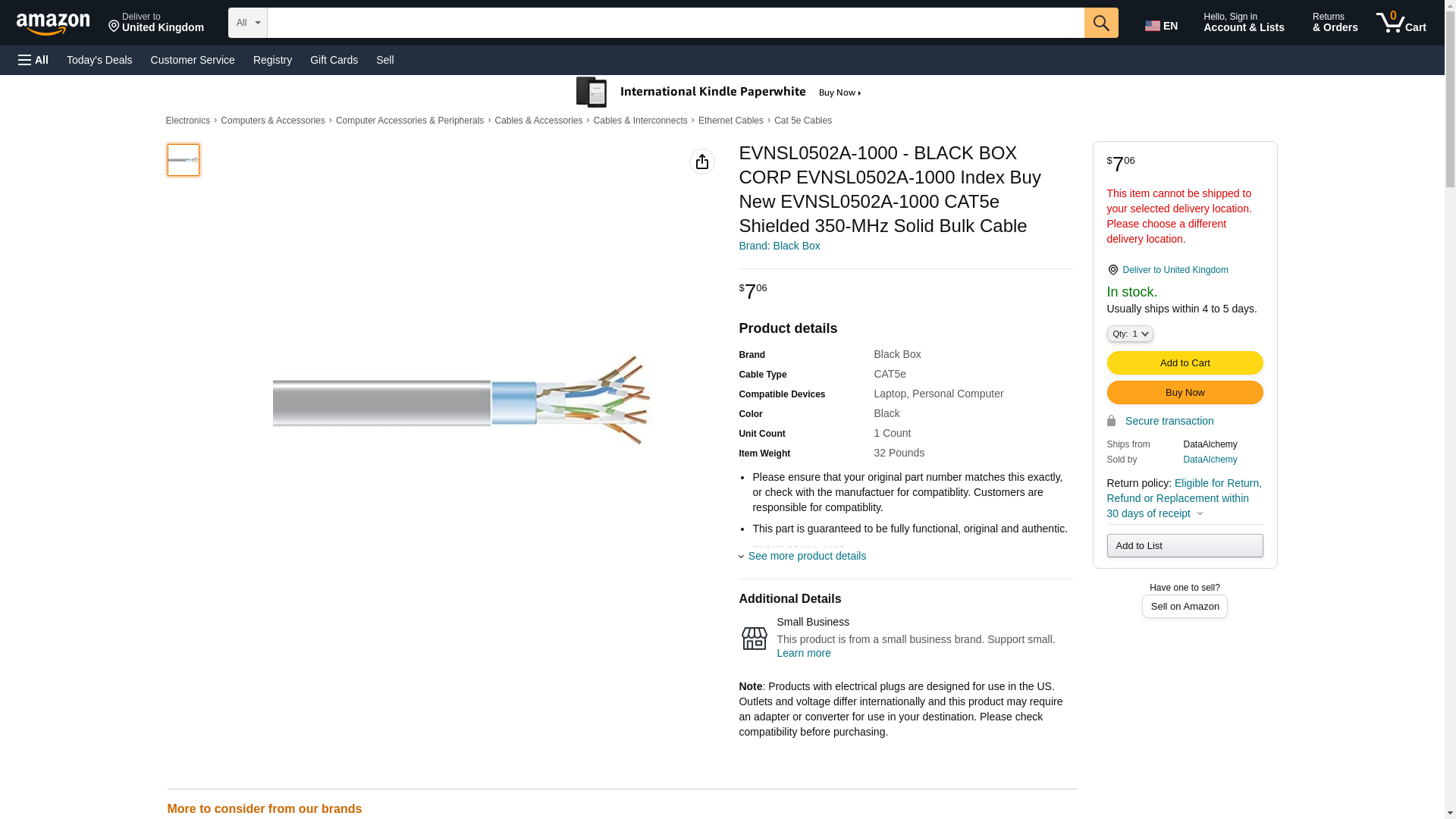 EVNSL0502A-1000 - BLACK BOX CORP EVNSL0502A-1000 Index Buy New EVNSL0502A-1000 CAT5e Shielded 350-MHz Solid Bulk Cable