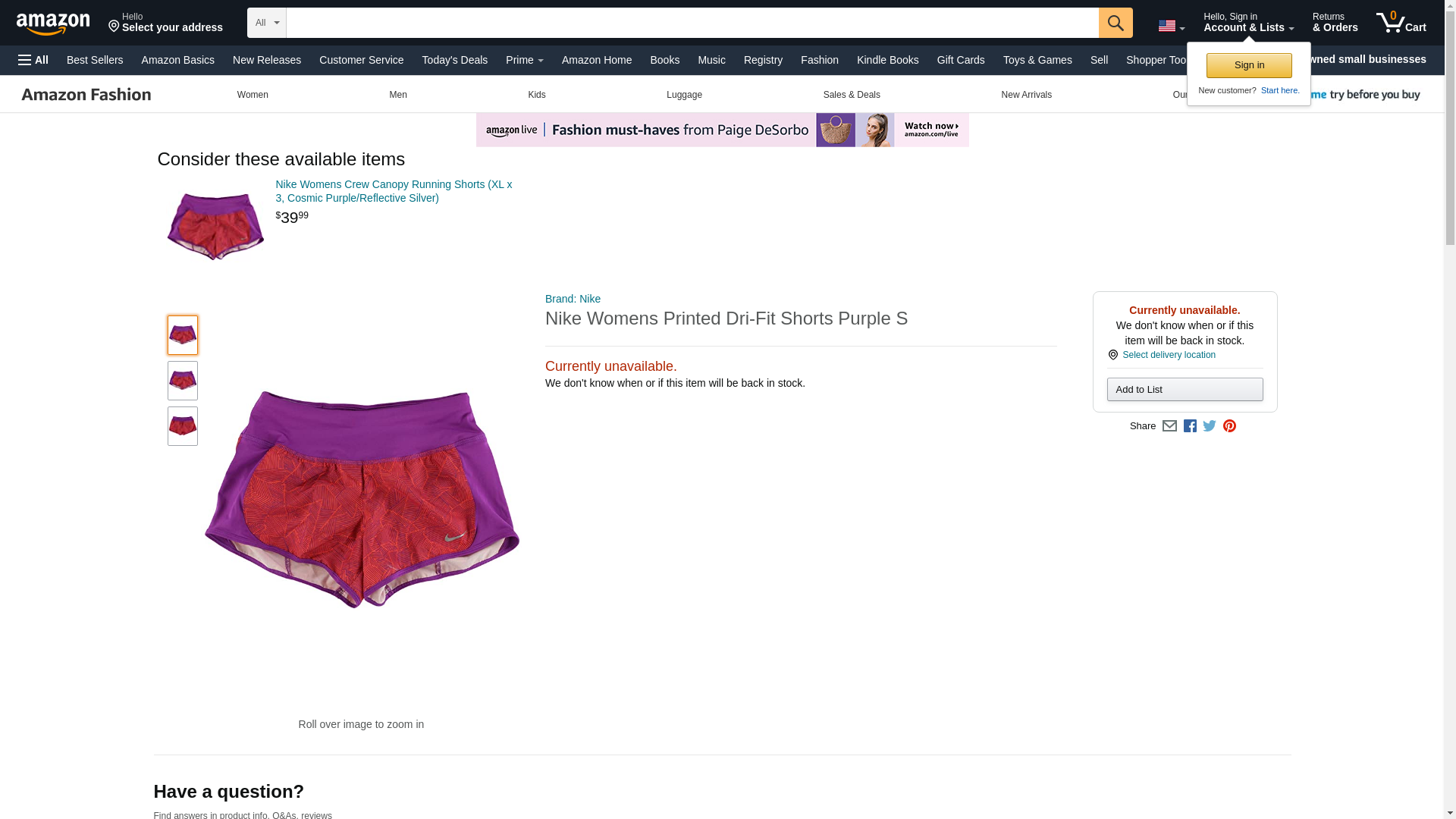 Nike Womens Canopy Crew Running Shorts Purple<p>Country of Origin: --Select--