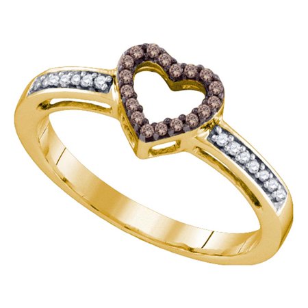 10kt Yellow Gold Womens Round Cognac-brown Colored Diamond Heart Love Ring 1/10 Cttw