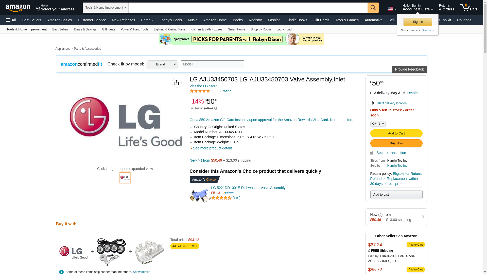 ![]() lgparts.com | AJU33450703 | 1 | 16 | 1 | 1 @ $109.95 |