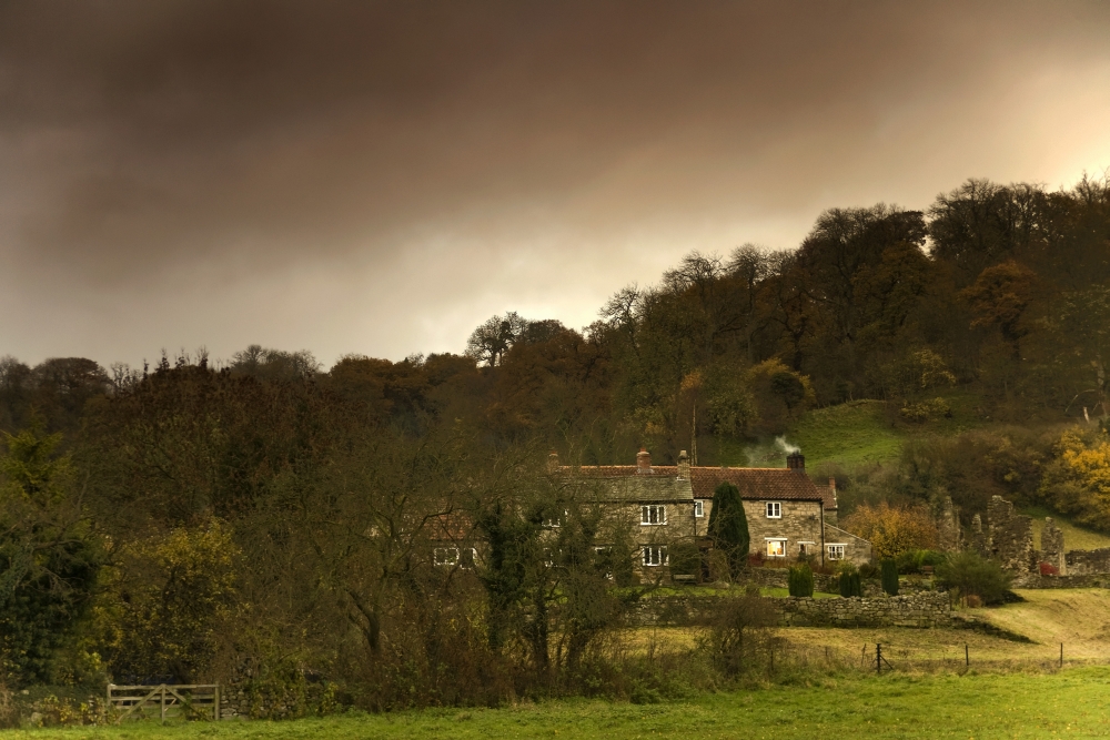 Posterazzi DPI1839052 Country Houses Dramatic Sky in Background - North Yorkshire England UK Poster Print, 17 x 11