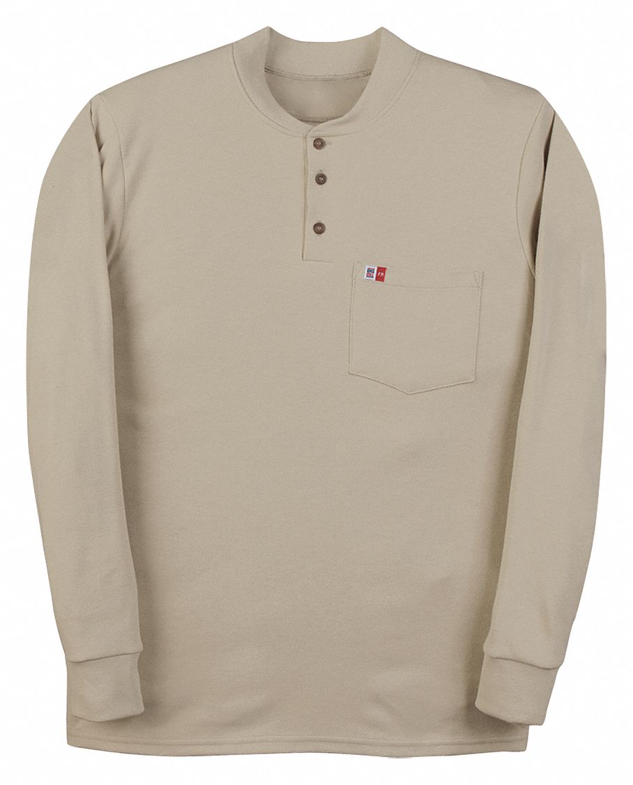 FLAME-RESISTANT HENLEY, LONG-SLEEVE, KHAKI, TALL, LARGE, 47 IN CHEST, 37 IN SLEEVES, TRUECOMFORT