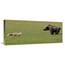 Global Gallery GCS-395462-30-142 30 in. Red Fox & Grizzly Bear on Sedge Flats, Katmai National Park, Alaska Art
