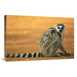 Global Gallery GCS-398122-2030-142 20 x 30 in. Ring-Tailed Lemur Mother with Baby Clinging to Her Back, Vulnerable&#