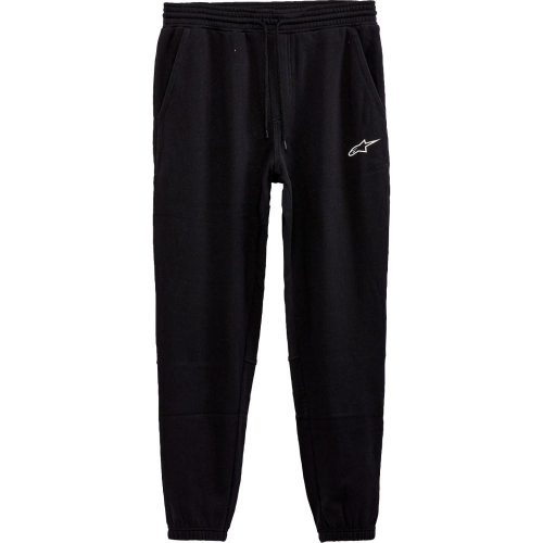 Internal main label and external label branding. Fleece trainer pant. 80% cotton / 20% polyester, 280 g/m2. Fleece pant with elastic waist plus drawcord, and elastic cuffs. Angle hand pockets, back welt pocket, legs seams and faux fly. Alpinestars logo print on thigh.