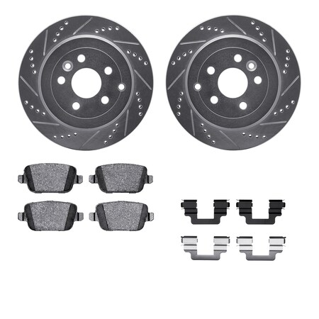7612-11016, Rotors-Drilled, Slotted-Silver w/ 5000 Euro Ceramic Brake Pads incl. Hardware, Zinc Coat