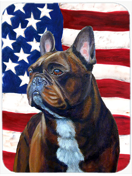 Carolines Treasures LH9010LCB 15 x 12 in. USA American Flag with French Bulldog Glass Cutting Board - Large