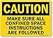 SmartSign "Caution: Confined Space Instructions Followed", Vinyl Label, 7" x 10". 4 mil thick vinyl with clear lamina...