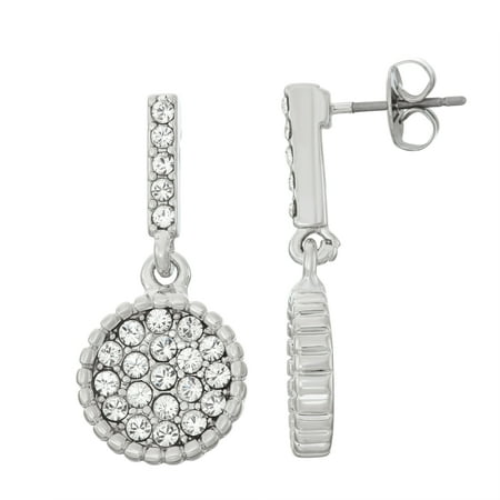 Rhodium Plated Circle Swarovski Crystal Bead Trim Dangle Earring