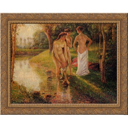 Bathers 24x20 Gold Ornate Wood Framed Canvas Art by Pissarro, Camille