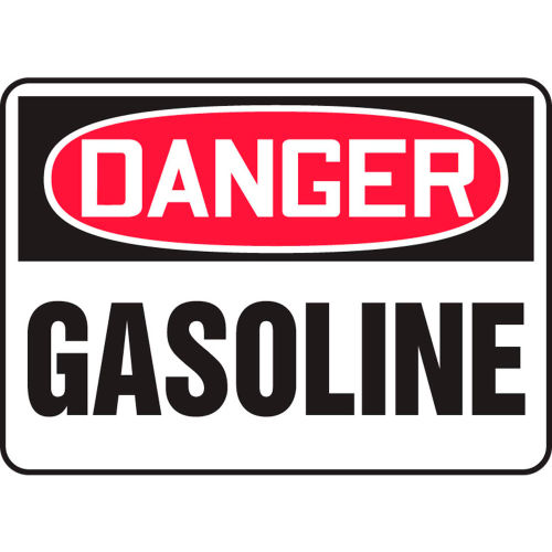 7" x 10" Plastic OSHA Sign with Legend: "Danger Gasoline" Alert others to the presence of gasoline in a hazardous work environment. Plastic (VP) Plastic combines standard, reliable performance with 92% recycled content to create a dependable, Earth-friendly material solution. Semi-flexible, impact-resistant plastic signs are ideal for standard-duty use - for installation indoors and for protected, short-term outdoor applications. Get the look, feel and characteristics of non-recycled plastic signs in an environmentally friendly version.